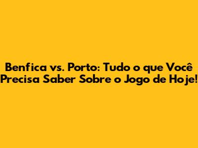 Hey guys! Hoje, o clássico dos clássicos está de volta: Benfica vs. Porto! Se você é fã de futebol português, sabe que este é o jogo que todos esperam. Mas calma, não se preocupe! Este artigo é o seu guia completo para não perder nada. Vamos falar sobre o horário do jogo, onde assistir, e tudo mais que você precisa saber para curtir essa partida épica. Prepare a pipoca, chame os amigos e vamos nessa!