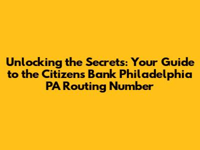 Finding Your Citizens Bank Philadelphia PA Routing Number: The Main Event