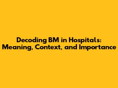 Hey guys! Ever wondered what BM stands for when you hear it tossed around in a hospital setting? Well, you're not alone! It's a common abbreviation, but its meaning can be a bit of a mystery if you're not in the medical field. Let's dive in and break down what BM signifies in the context of hospitals, its significance, and why it's a crucial piece of the healthcare puzzle. This article will help you understand the nuances behind this medical term. So, buckle up; we're about to decode this term! The context is crucial because BM can have different meanings, and in a hospital, it almost always refers to something quite specific. Understanding this can help patients, families, and even healthcare professionals better communicate and ensure the best possible care.