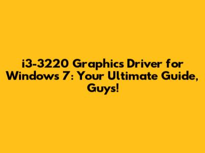 I3-3220 Graphics Driver For Windows 7: Easy Guide