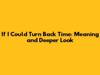 If I Could Turn Back Time: Meaning And Deeper Look