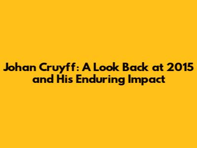 Cruyff's Legacy: Coaching, Influence, and the Year 2015