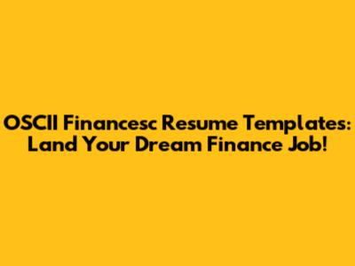 Why OSCII Financesc Resume Templates Are Your Secret Weapon