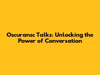 Oscuransc Talks: Unlocking The Power Of Conversation