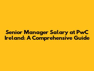 Senior Manager Salary At PwC Ireland: What You Need To Know