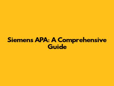 Understanding Siemens APA: The Basics