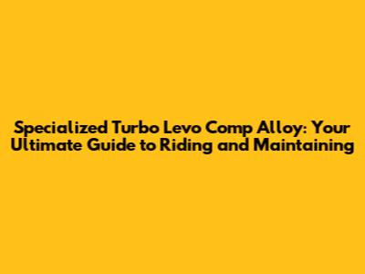 Specialized Turbo Levo Comp Alloy: Your Ultimate Guide