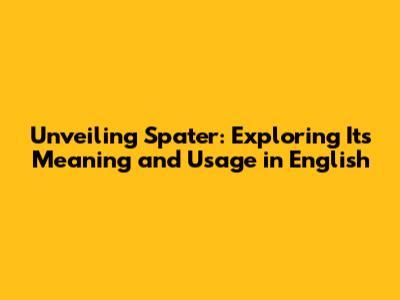 As we journey through this exploration, you will gain a deeper understanding of the word "spater". We'll not only uncover its literal meaning, but also delve into potential synonyms, contextual applications, and any unique characteristics that set it apart. Whether you're a language enthusiast, a student, or simply curious, this article is designed to provide you with a comprehensive understanding of what "spater" entails. Ready to become a "spater" expert? Let's go!